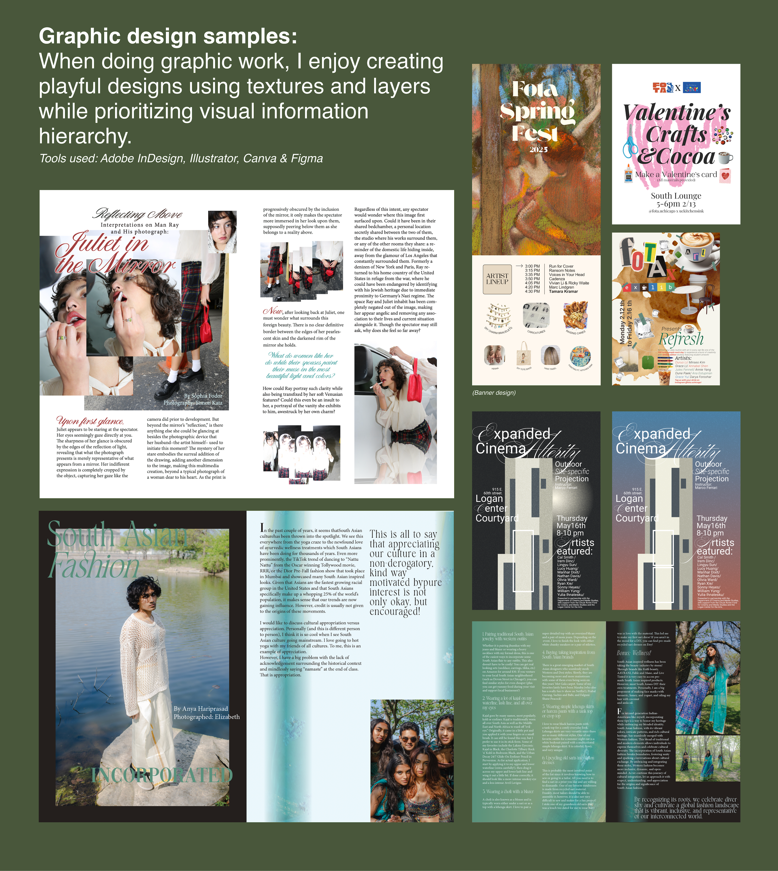 A selection of my graphic work ranging from magazine layouts to poster designs
