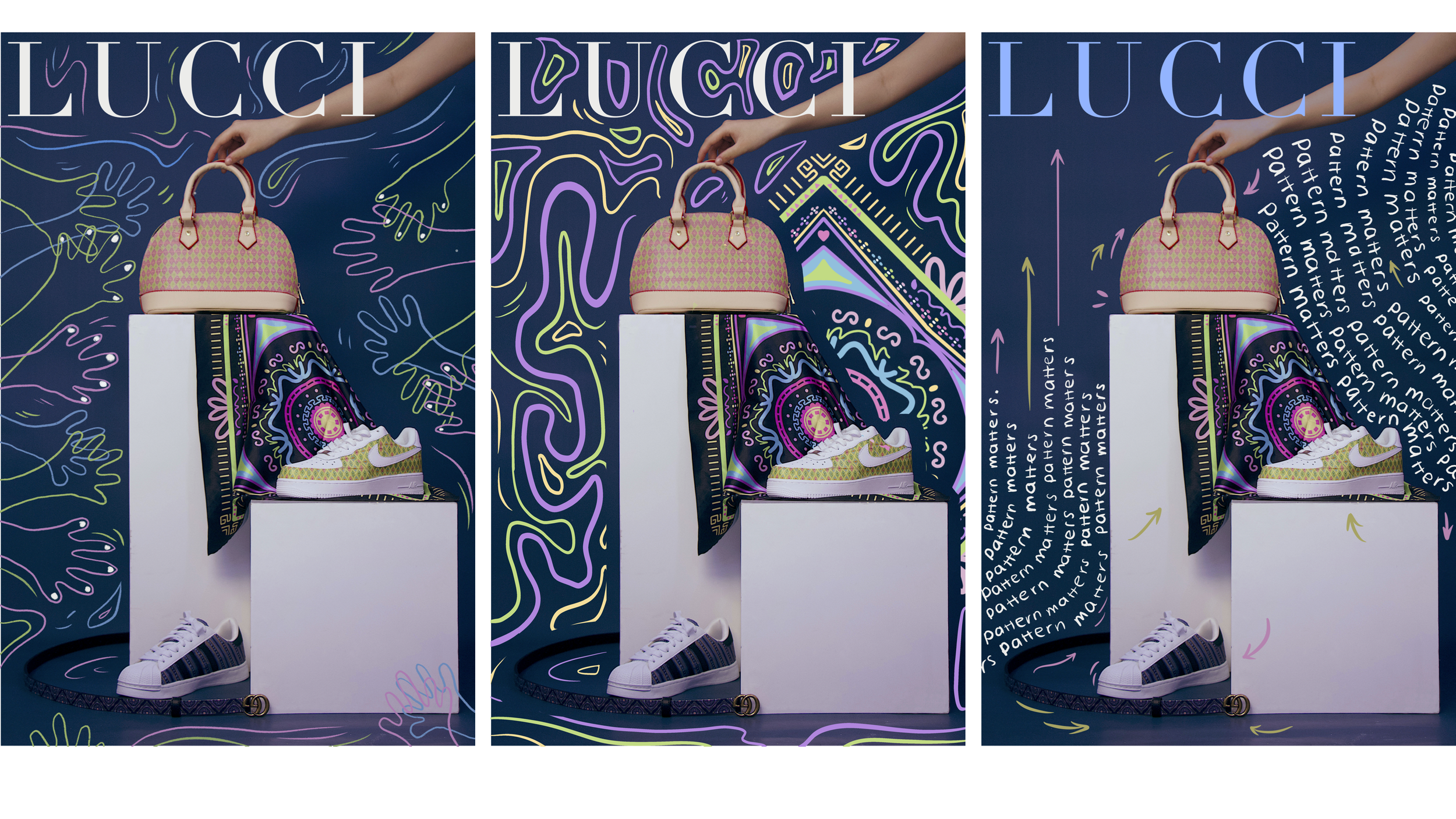 In today's globalized world, there are a few big brands dominating the world wide market. Consumerism and urbanization of cities have, to a large extent, contributed to the homogeneity among people today. As a result, people gradually lose their individuality, diversity and gets branded themselves with all kinds of societal standards. In this project, I created my own brand, LUCCI, that includes iconic products from top global fashion brands covered in my own pattern designs inspired by the Zhuang minority from China. The goal is to try and transform these mainstream fashion pieces into unique pieces that remind us about our heritage and create contrast between the majorities and minorities.