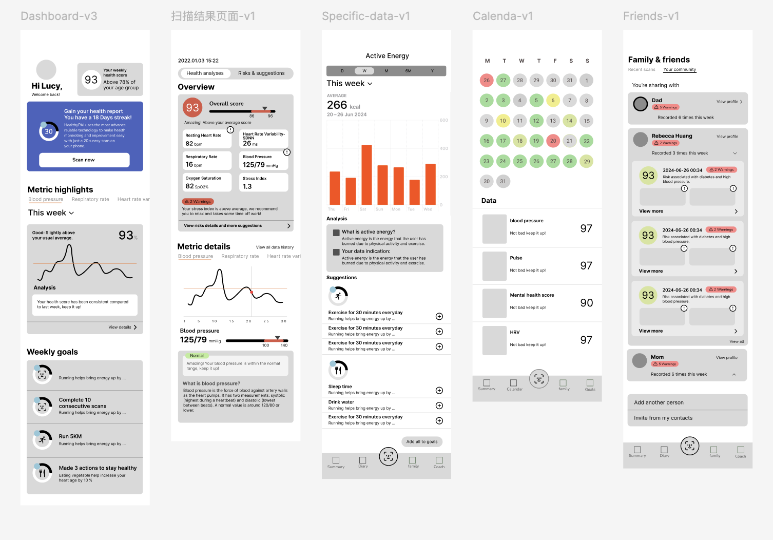 A challenge I faced was improving data visualization and information hierarchy to support the product goal of boosting health scan frequency and health actions.