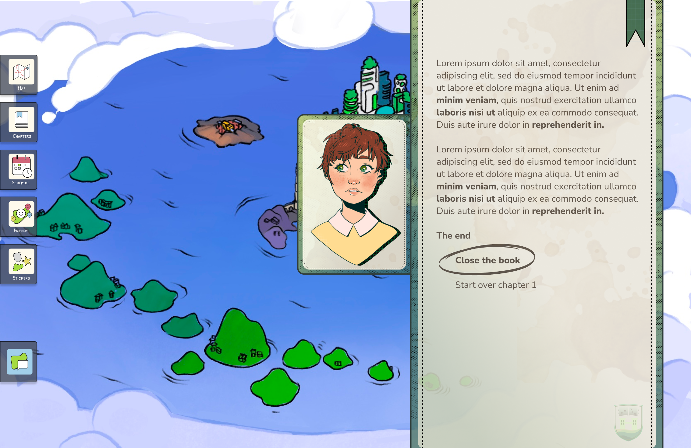 I designed and optimized the narrative and puzzle interfaces to align with the game illustrators' style, while reflecting each island's unique characteristics and narrative.