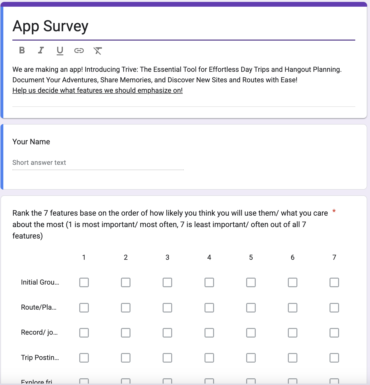 While there are many apps out there offering detailed travel planning function, college students are too lazy to fill in every detail of the places we are going, time, number of people etc.